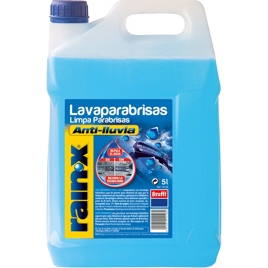 Este lavaparabrisas con tecnología hidrofóbica, es capaz de generar pequeñas gotas de agua que se deslizan rápidamente por el parabrisas, mejorando la visibilidad en condiciones de lluvia o nieve. Contiene una nueva fórmula con RAIN X. Su efecto es apreciable a partir de los 80km/h. El producto no es congelable hasta alcanzar los -5°C, por lo que permite su uso durante cualquier periodo del año. Elimina manchas de barro, mosquitos, grasa, etc.